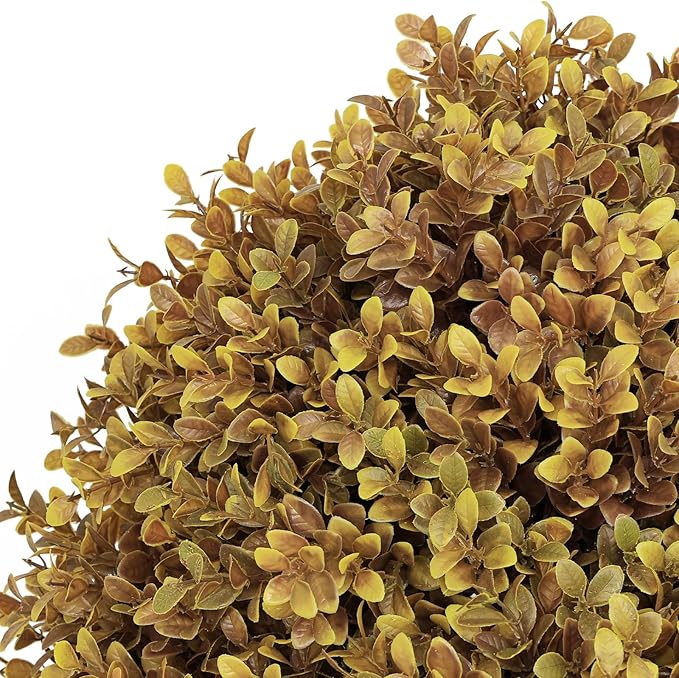 - Realistic Fall Color & Texture: Each faux topiary ball bush features realistic autumn-toned boxwood foliage in rich golden yellow, these boxwood plants look like real fall foliage. Each ball bush features a full, lifelike shape—perfect artificial outdoor shrubs for seasonal curb appeal.
