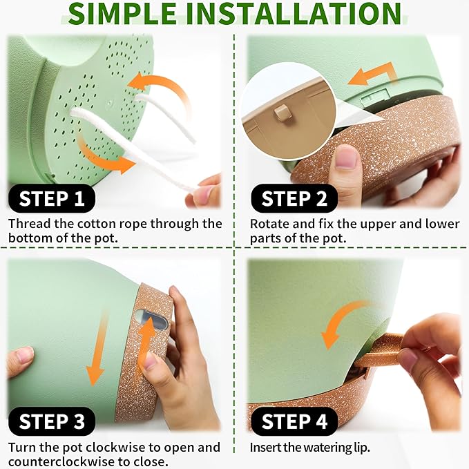 - 【Self-Watering Design】The super large water storage tank and cotton core can provide automatic watering for most plants for 14 days, and the perfect self watering design allows you to travel and vacation with peace of mind.