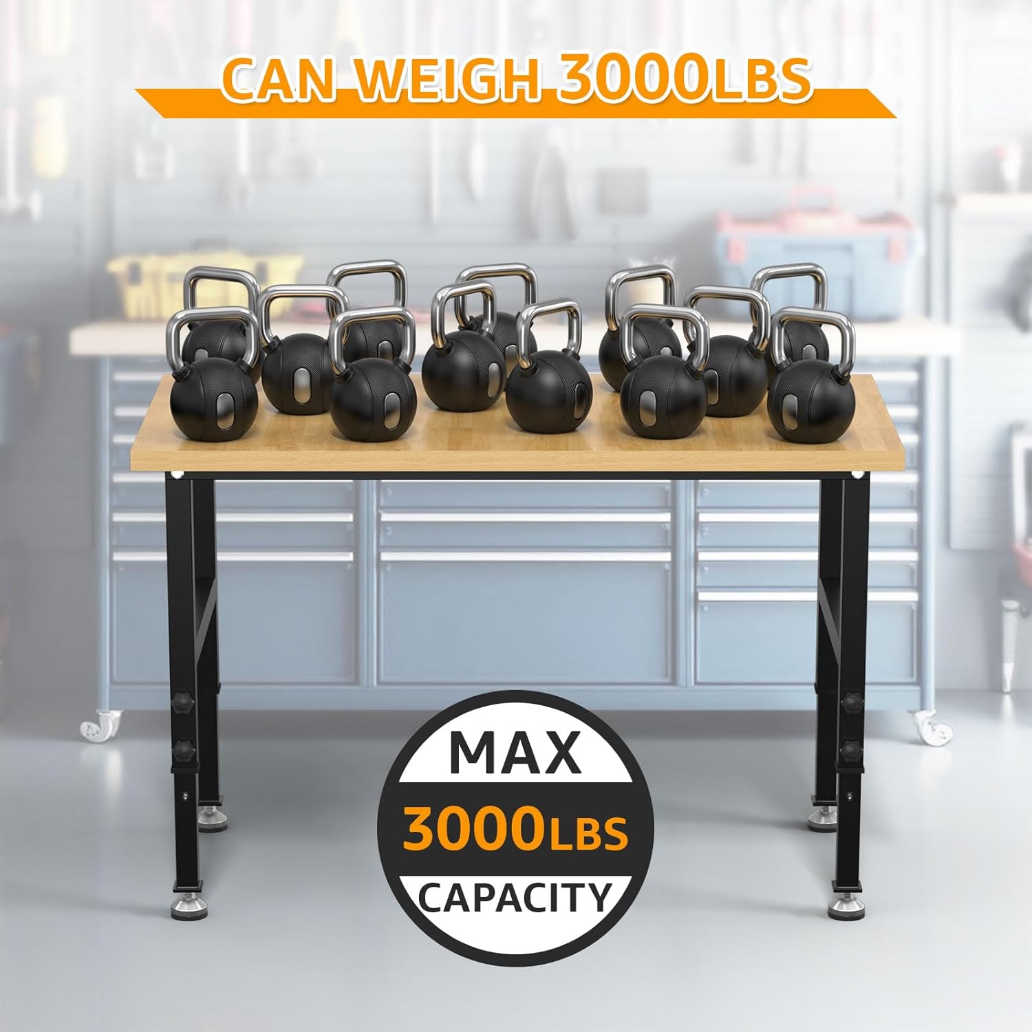 48" Adjustable Workbench,Heavy-Duty Work Table,3000 LBS Load Capacity Particleboard Hardwood Workstation with Fixed feet,for Workshop, Garage