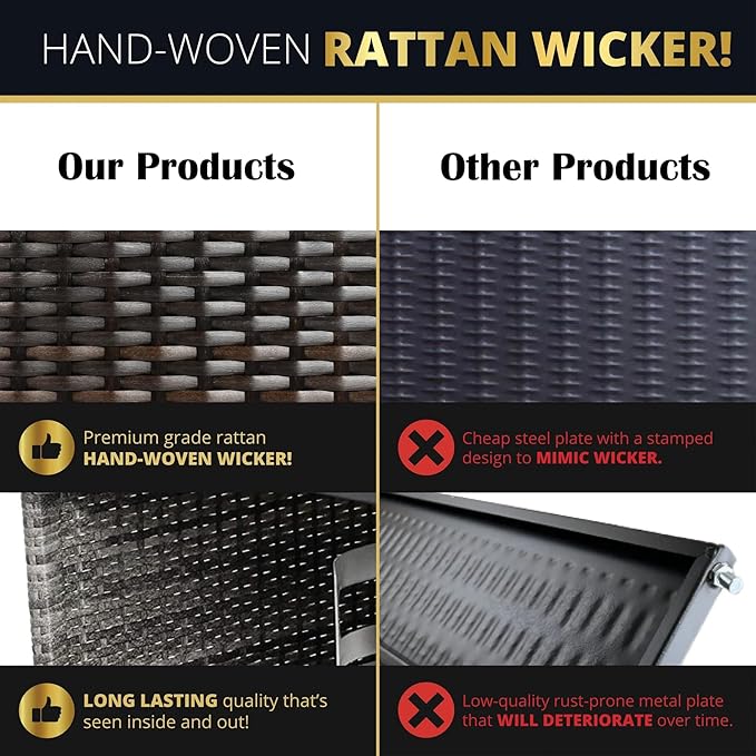 - 【Premium 42" Propane Fire Pit Table】Elevate your patio with this spacious 42-inch outdoor fire pit centerpiece. Crafted from handwoven synthetic rattan wicker & powder-coated aluminum frame for lasting style and weather/rust/fade resistance