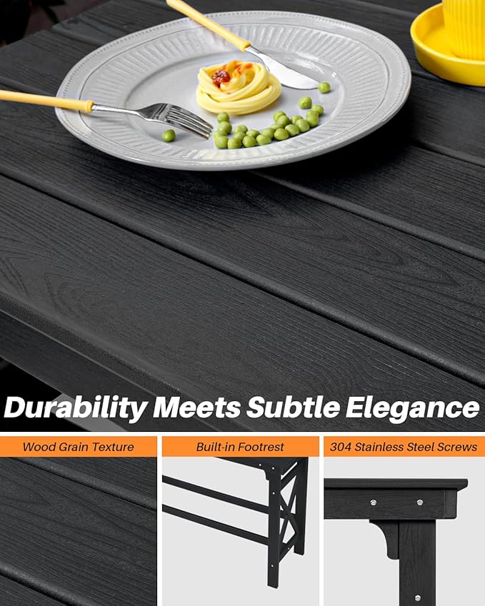 - X-Frame Stability with Rust-Resistant Hardware: The bold X-shaped leg design balances the table securely while adding visual interest. Built with premium 304 stainless steel screws, the hardware resists corrosion and rust, ensuring reliable strength and durability in all weather conditions, including coastal climates.