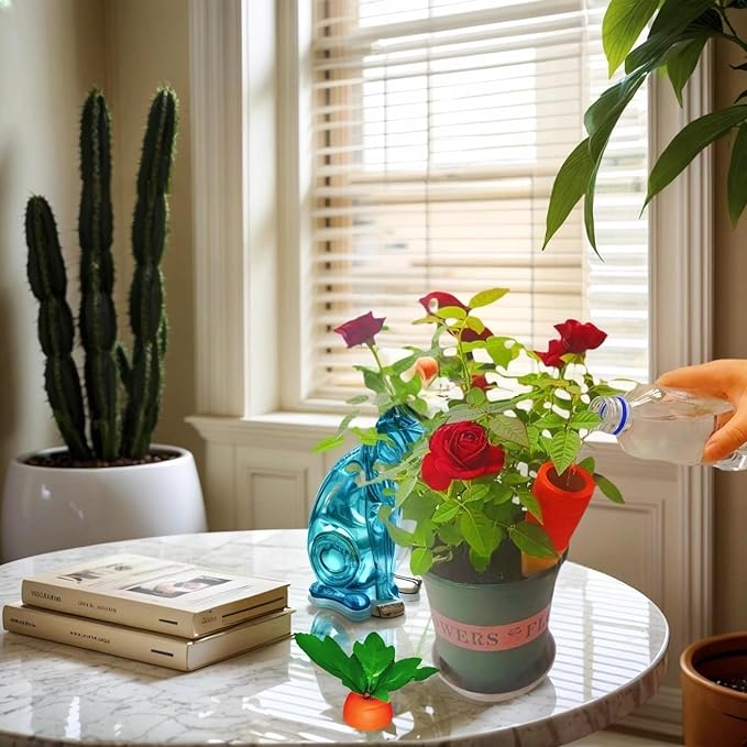 - Cute carrot shape: This plant terracotta watering stake is designed in a round and full carrot shape, with a few three-dimensional green leaves on the top, which instantly brightens the cuteness of the potted plants, full of natural childlike fun, making your plants more vibrant. It is not only a practical irrigation tool, but also a gardening ornament for windowsills and desktops