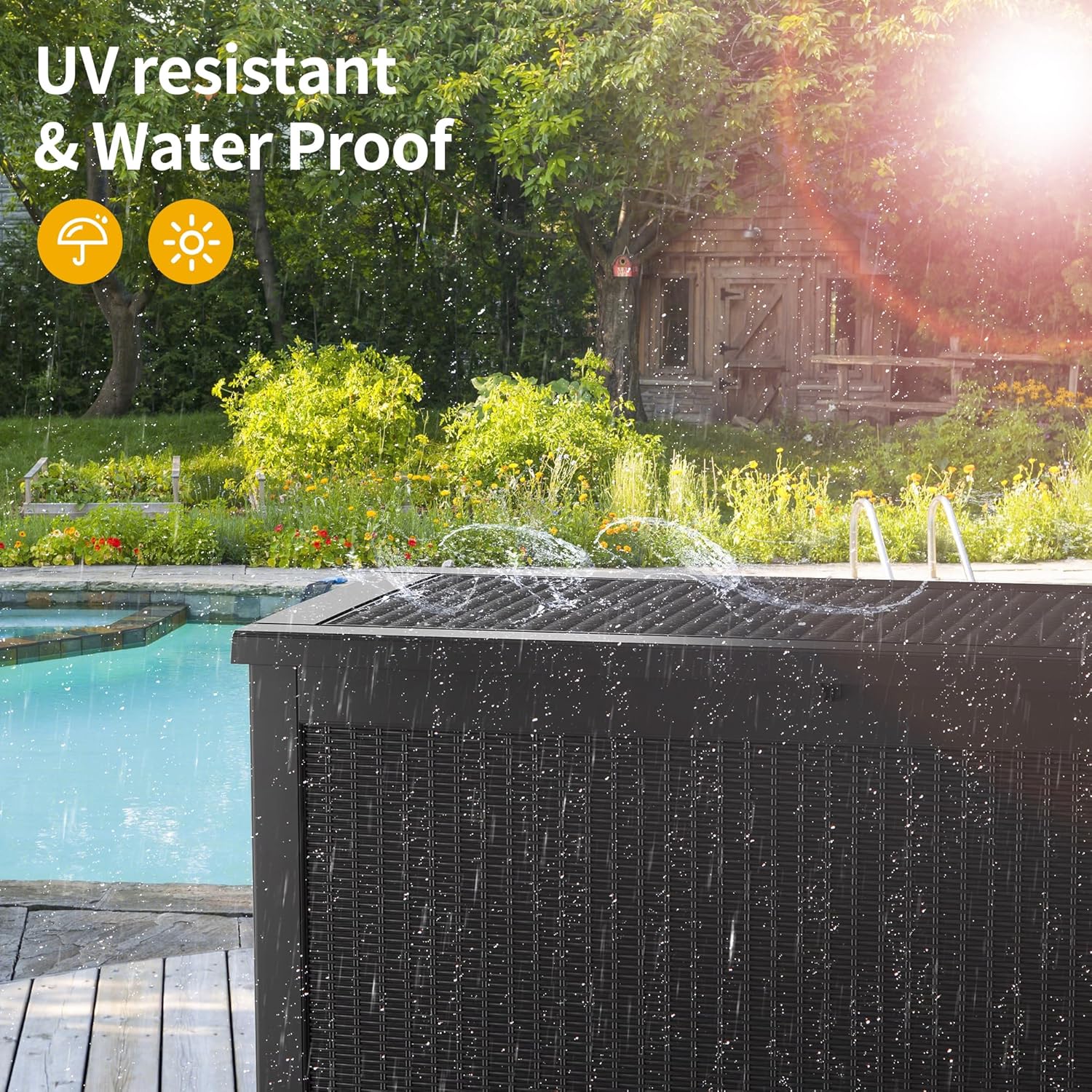 320 Gallon Waterproof Large Resin Deck Box Indoor/Outdoor Lockable Storage Container and Seating for Garden, Pool, and Patio (320 Gallon, Black)