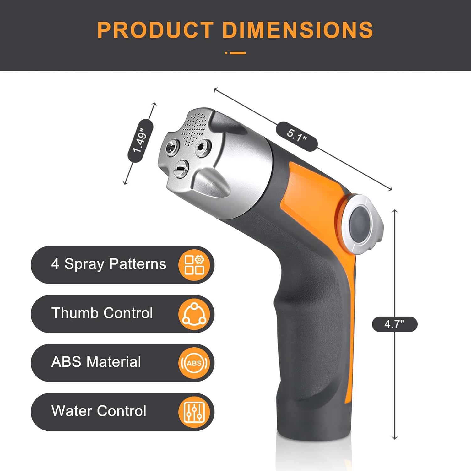 Heavy Duty Garden Hose Nozzle Sprayer - 4 Spray Patterns, High Pressure, Thumb Control Flow Valve w/On-Off, Washers for Watering, Car & Pet Washing